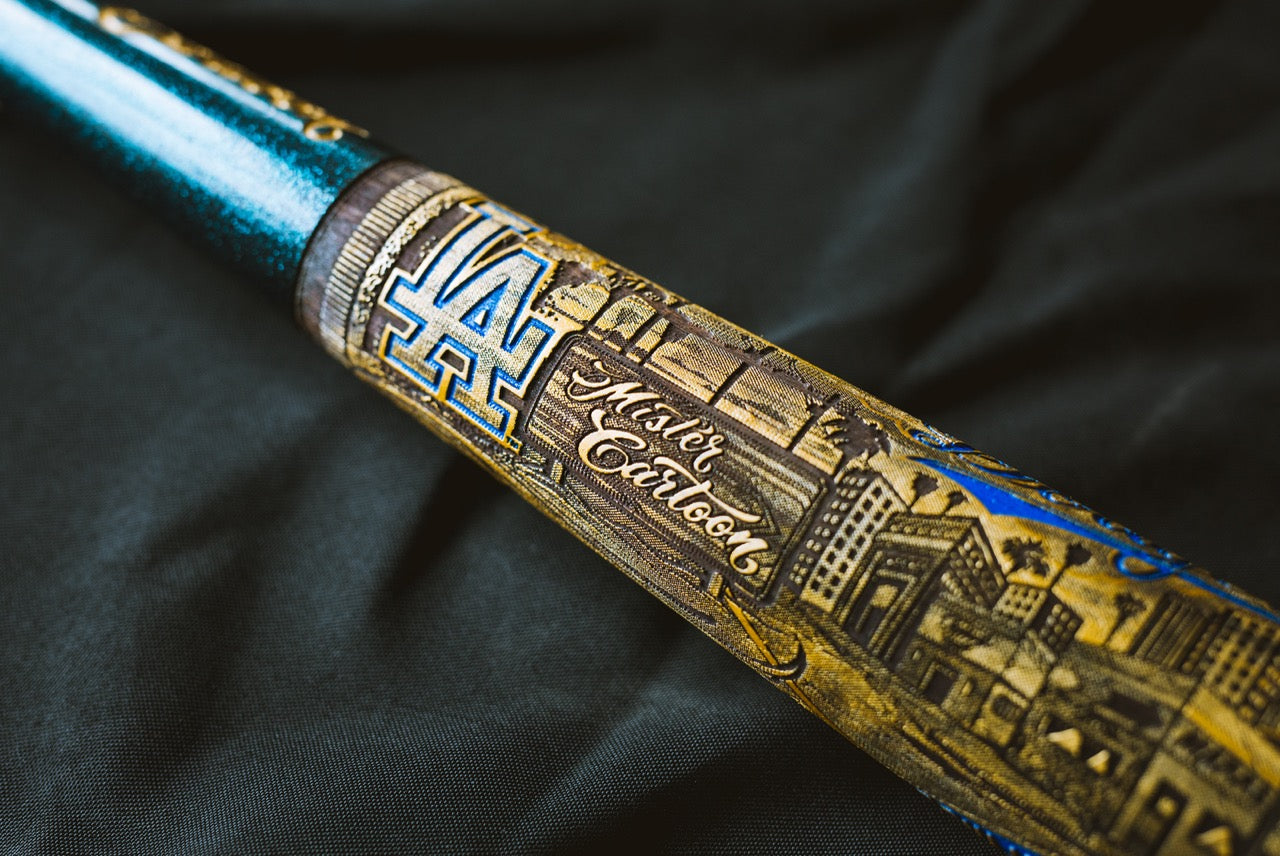 GOLD WORLD SERIES 2024 x LA DODGERS X MISTER CARTOON X PILLBOX FULL-SIZE HAND PAINTED & NUMBERED LIMITED EDITION COLLECTORS BAT