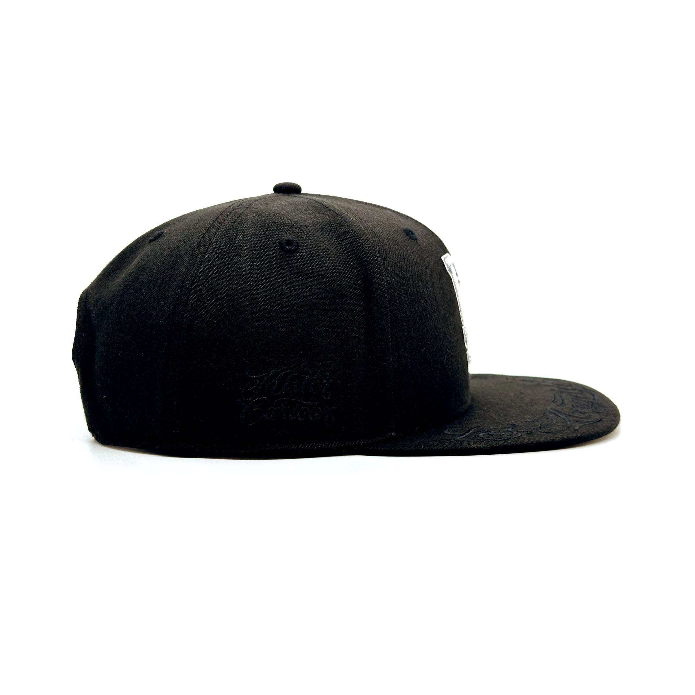 A native Angeleno, Cartoon’s distinctive, hand-rendered designs pull their inspiration from the city’s streets, and his custom elements are incorporated purposefully on this hat.