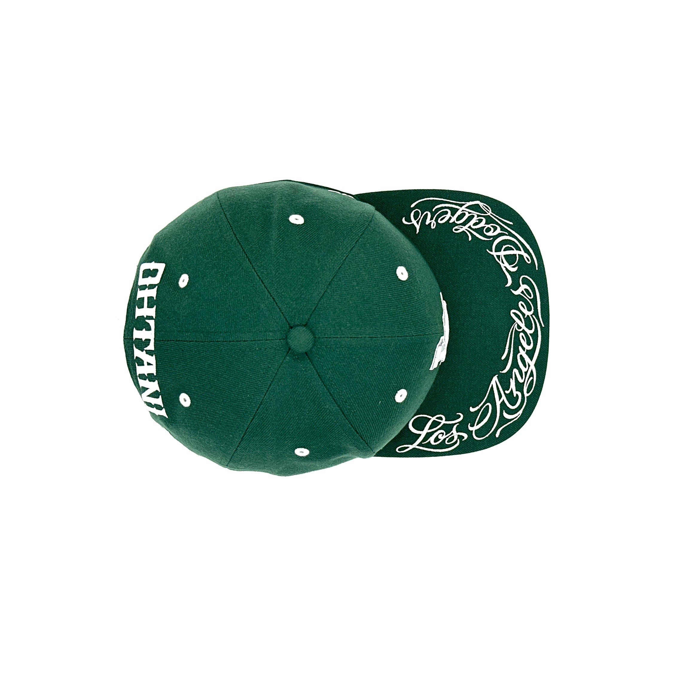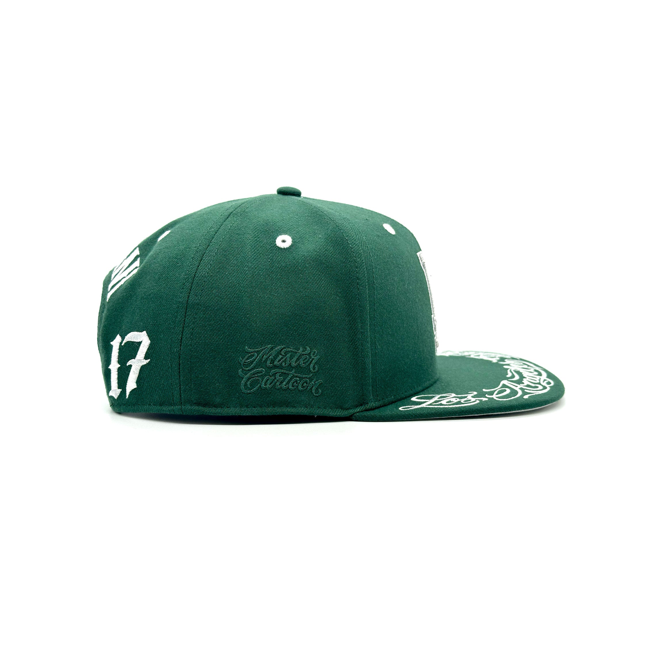 A native Angeleno, Cartoon’s distinctive, hand-rendered designs pull their inspiration from the city’s streets, and his custom elements are incorporated purposefully on this hat.