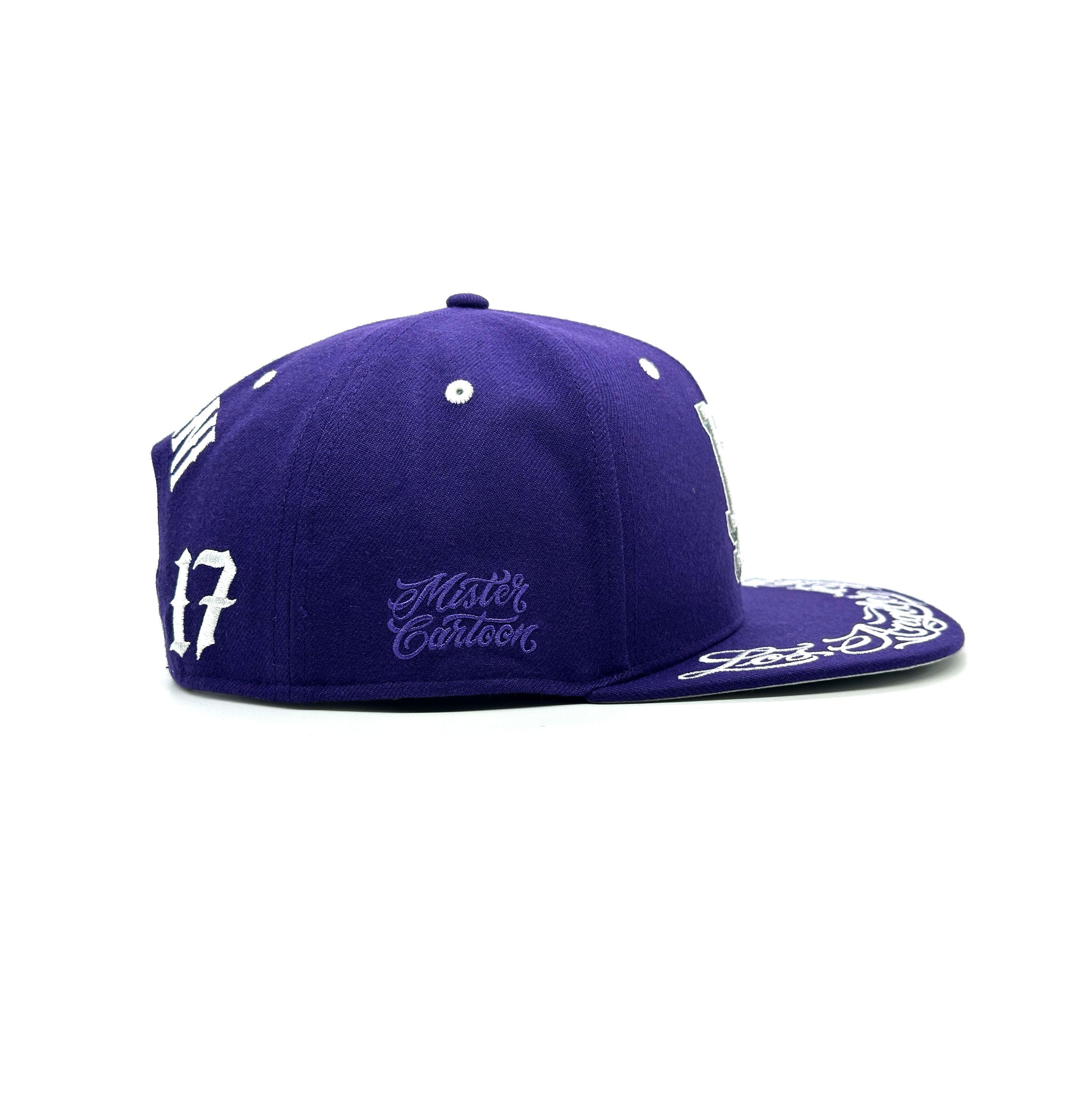 A native Angeleno, Cartoon’s distinctive, hand-rendered designs pull their inspiration from the city’s streets, and his custom elements are incorporated purposefully on this hat.